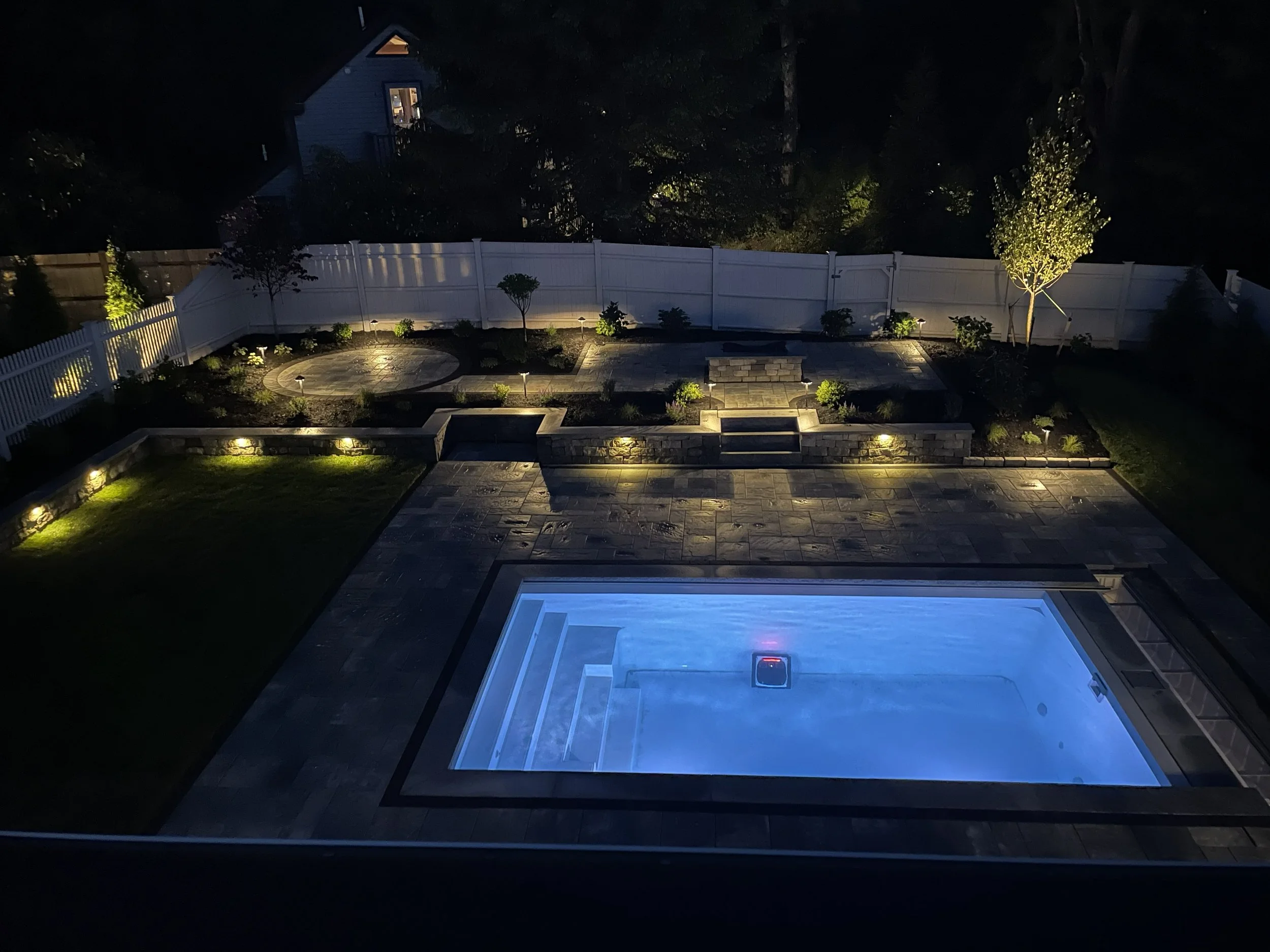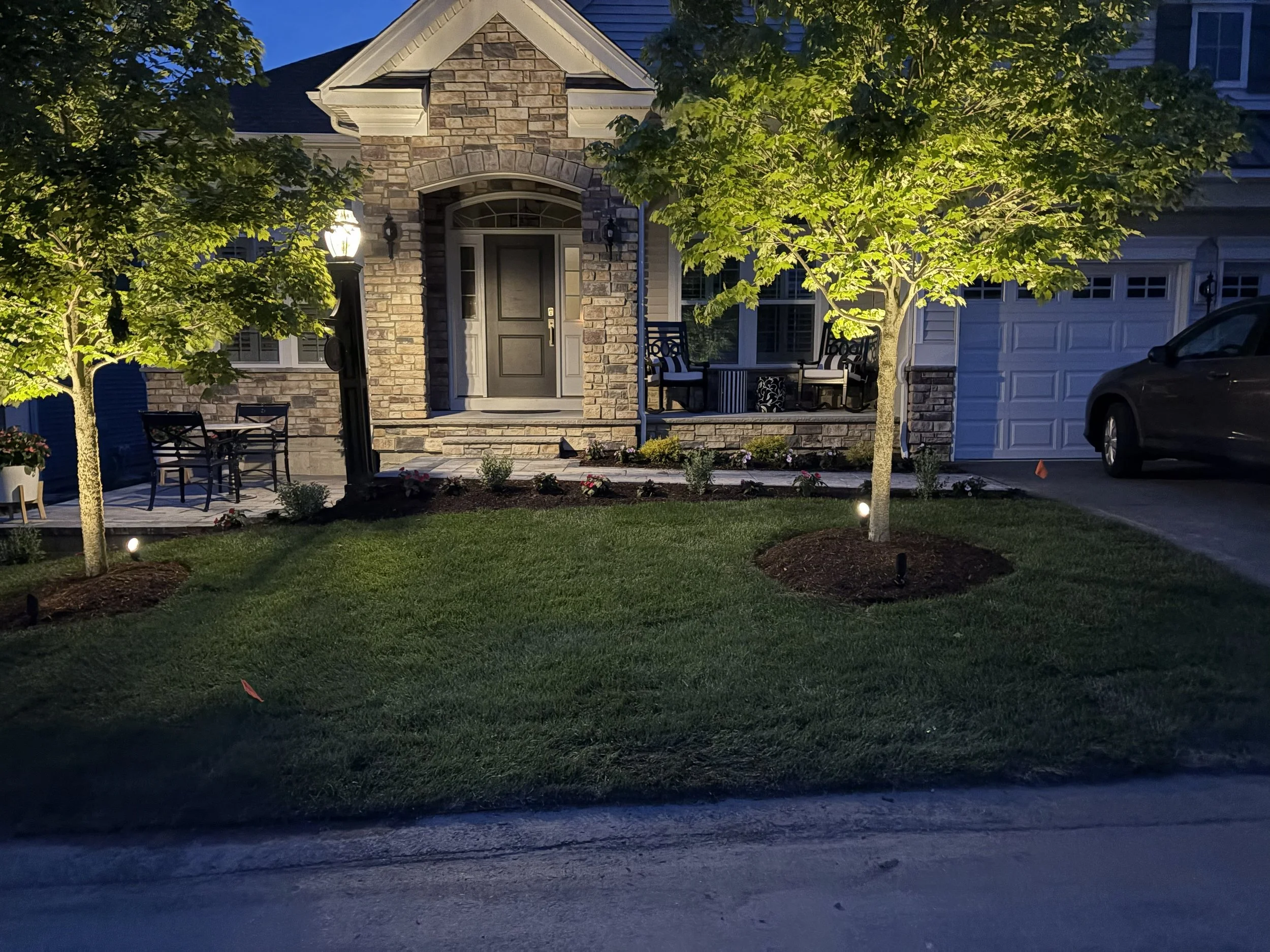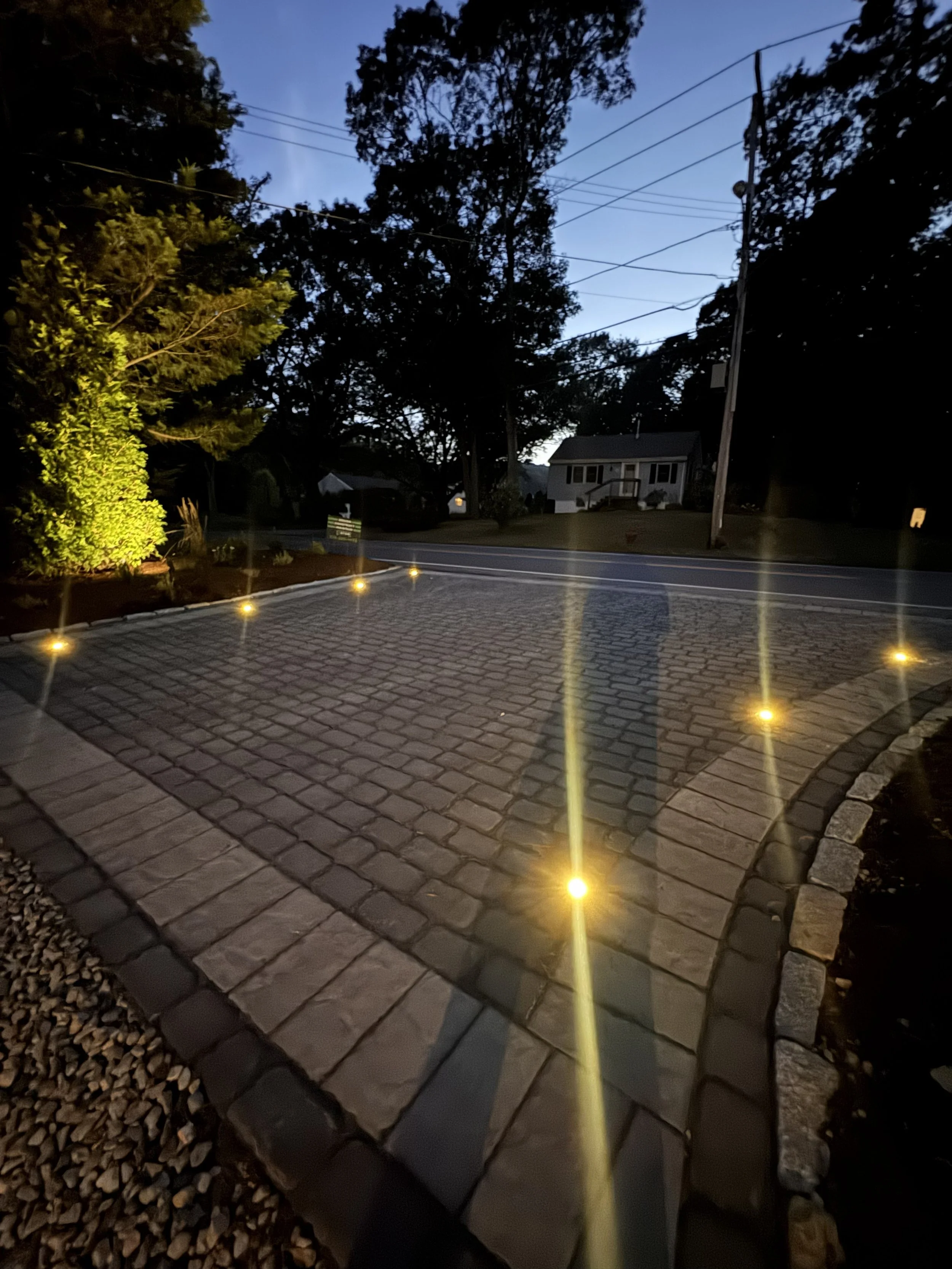 Thoughtfully placed landscape lighting extends the beauty and usability of your outdoor space long after the sun goes down. At Eaton Landscaping, we design and install low-voltage lighting systems that highlight hardscapes, plantings, walkways, and architectural features while creating a warm, inviting atmosphere. Our goal is to enhance safety, showcase craftsmanship, and bring subtle nighttime character to your property.
